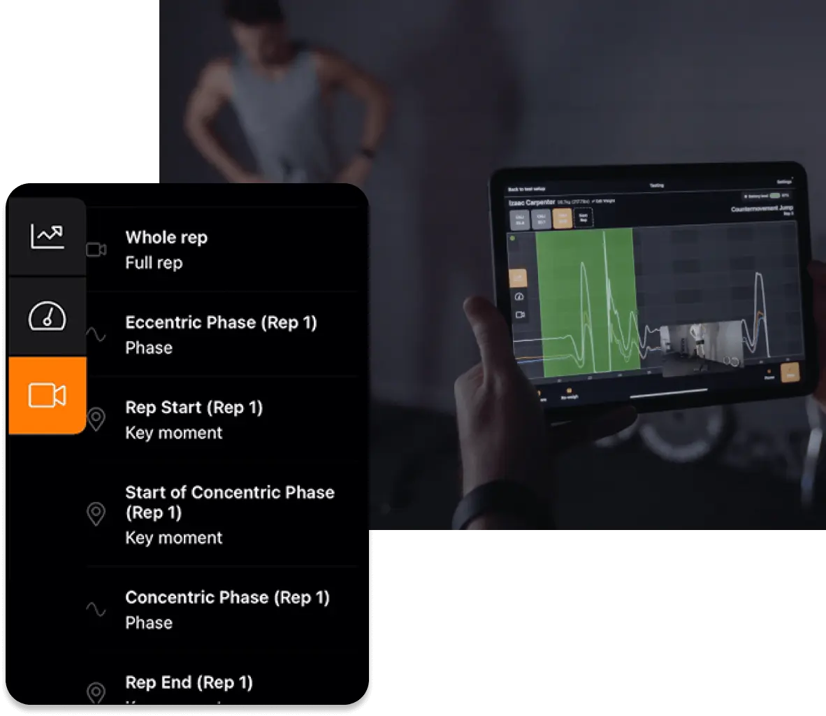 Sólo tienes que utilizar la cámara de tu iPhone o iPad para capturar vídeos de tus deportistas mientras realizan cualquier prueba de ForceDecks, y verás los datos de fuerza y las secuencias sincronizadas automáticamente, anotadas y listas para saltar a ellas en cualquier momento.