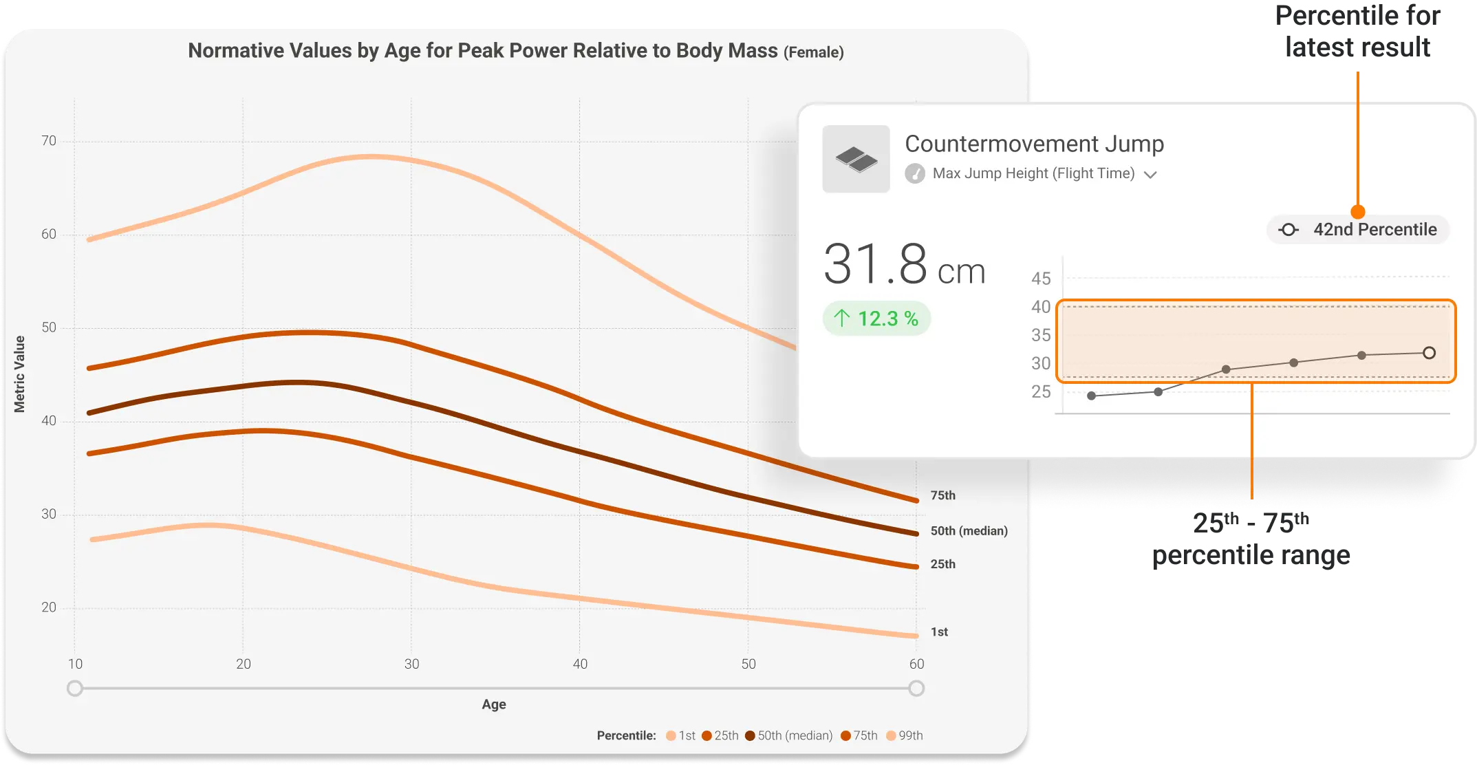 VALD's Normes - données normatives intégrées - fournit des informations et un contexte sur les performances de vos athlètes.