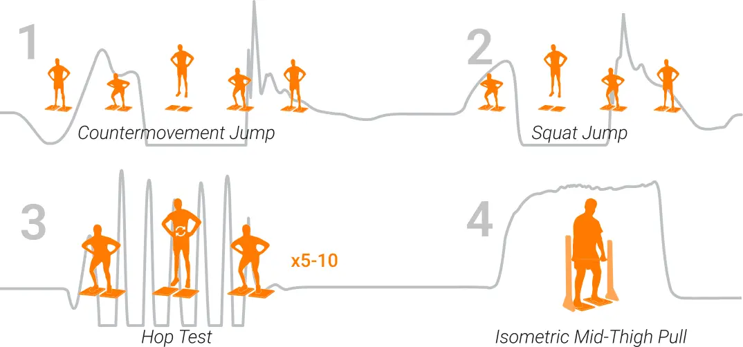 ForceDecksを使用して合計4つのテストを行います。3つはジャンプテストであり、もう1つは等尺性テストです。