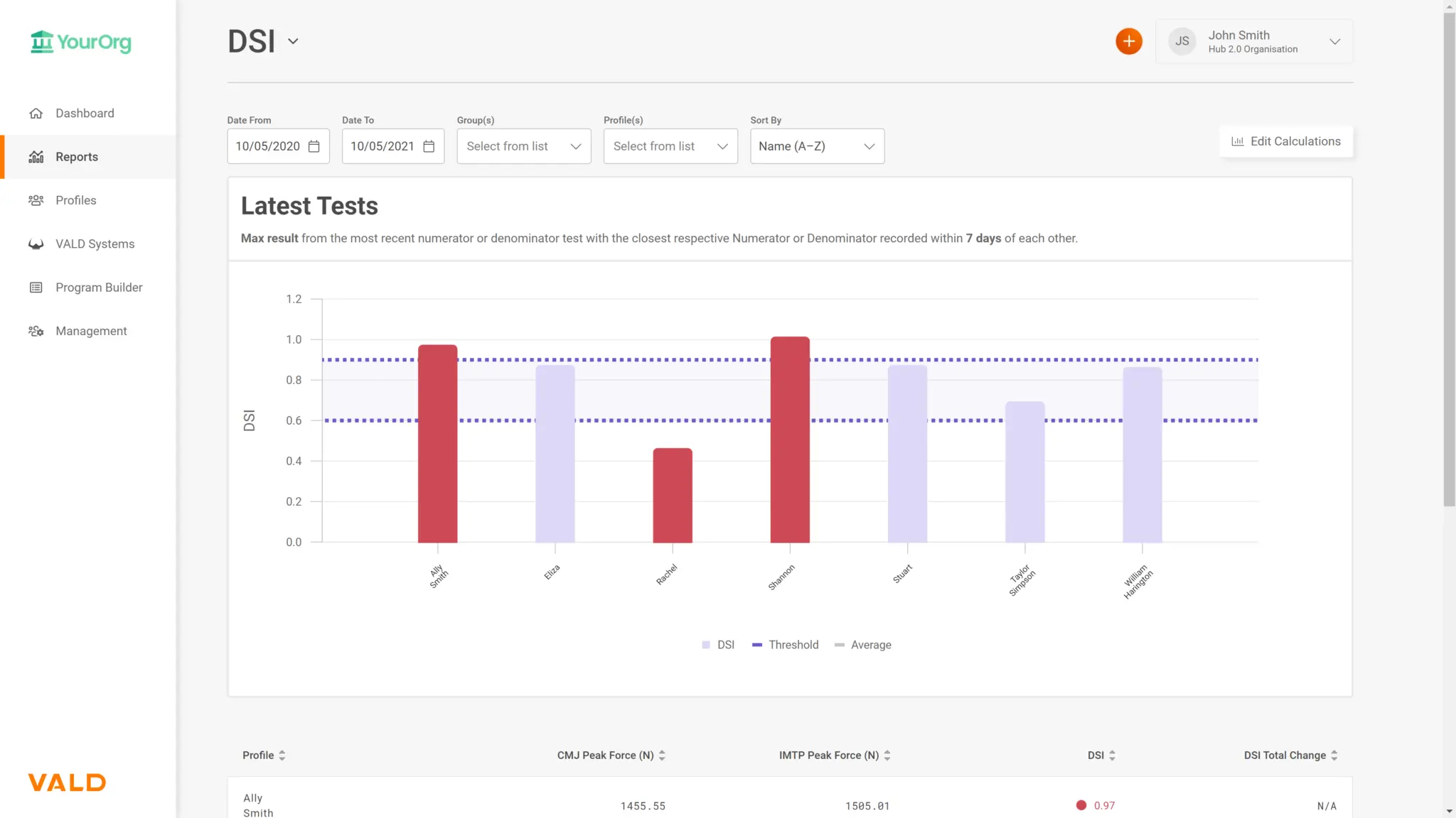 See the VALD Hub DSI Report to view the latest results for your team.